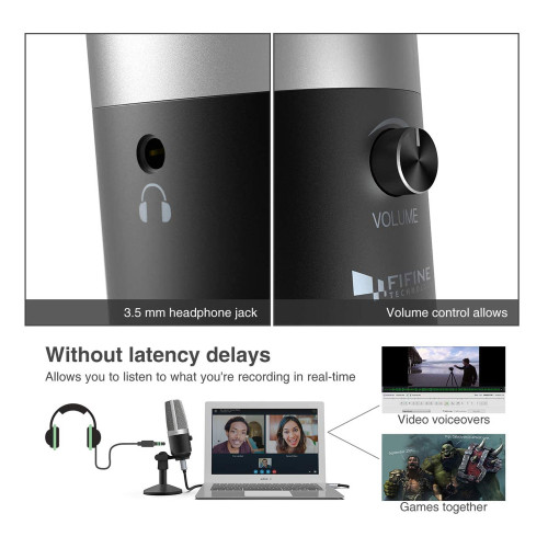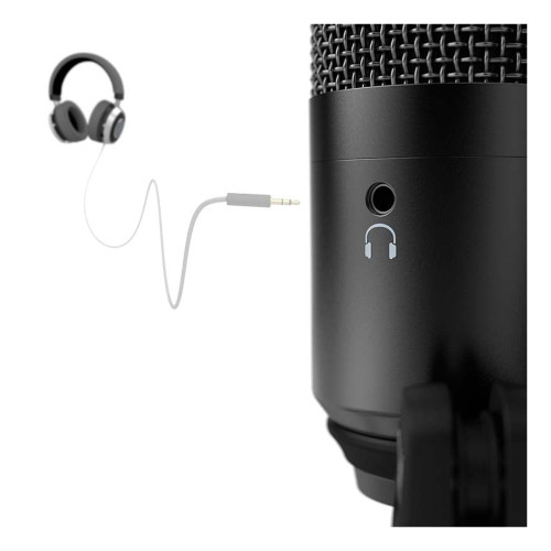 به منظور کنترل کیفیت صدای در حال ضبط و گوش دادن به آن، میکروفون مجهز به جک هدفون 3.5میلی متری است.