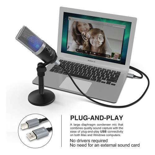 این میکروفون دارای طراحی ظاهری زیبا و شیک است. بر روی بدنه آن ولوم کنترل شدت صدا تعبیه شده که به شما اجازه میدهد شدت صدا را به راحتی کم و زیاد کنید. پایه رومیزی این میکروفون از جنس فلز و دارای قابلیت جداشدن است که کار حمل آن را آسان میکند. تنظیم این دستگاه آسان بوده و براحتی میتوان ارتفاع و زاویه آن را بطور دلخواه تنظیم نمائید. صفحه زیرین پایه به اندازه کافی ضخیم و سنگین است تا هنگام جابجایی و در اثر برخورد با آن بهسادگی واژگون نشود. همچنین کابل سرعت بالای USB این میکروفون بسیار باکیفیت و دارای دوشیلد است تا کمترین تداخل را داشته باشد.