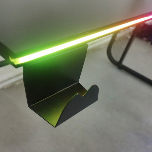 این میز به نورپردازی RGB نئونی مجهزه که همراه با کنترل و منبع تغذیه ارائه میشه و امکان تنظیم رنگها رو فراهم میکنه. پایههای تنظیمی گردون کمک میکنن که میز روی سطوح مختلف کاملاً تراز بشه. همچنین برای راحتی کاربر، یه پنج راهی برق داخلی داخل میز تعبیه شده که امکان اتصال راحت تجهیزات گیمینگ رو فراهم میکنه. این میز بهراحتی مونتاژ میشه و همراه اون پیچگوشتی و آچار آلن هم قرار داده شده تا کاربران بتونن بهسادگی میز رو سرهم کنن. علاوه بر این، داشتن جا لیوانی و پایه هدفون از ویژگیهای کاربردی این مدل محسوب میشه.