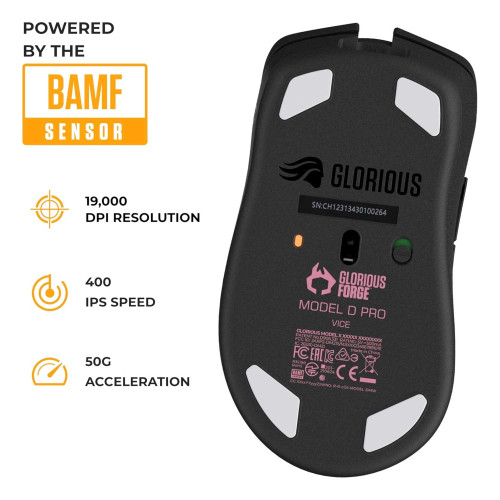 ماوس D Pro Vice به سنسور پیشرفته Glorious BAMF مجهز شده که دقتی برابر با ۱۹,۰۰۰ DPI داره. این میزان دقت، در کنار حداکثر شتاب ۵۰G، باعث میشه که کوچکترین حرکات دستتون هم با دقت بالا روی صفحه نمایش اجرا بشه.