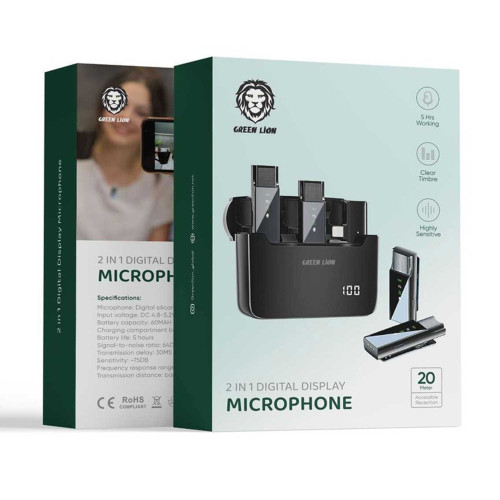مشخصات فنی میکروفون یقهای بیسیم Green Lion مدل GN2IN1DDMTCBK 2in1 رابط Type-C