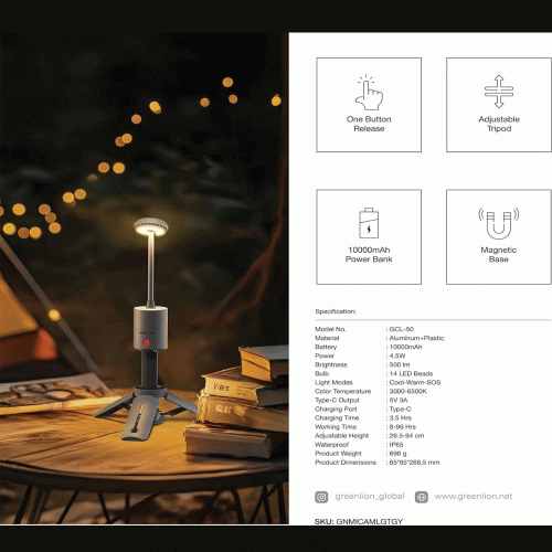 Green Lion GNMICAMLGTGY Mini Camping Light Compact GCL50
