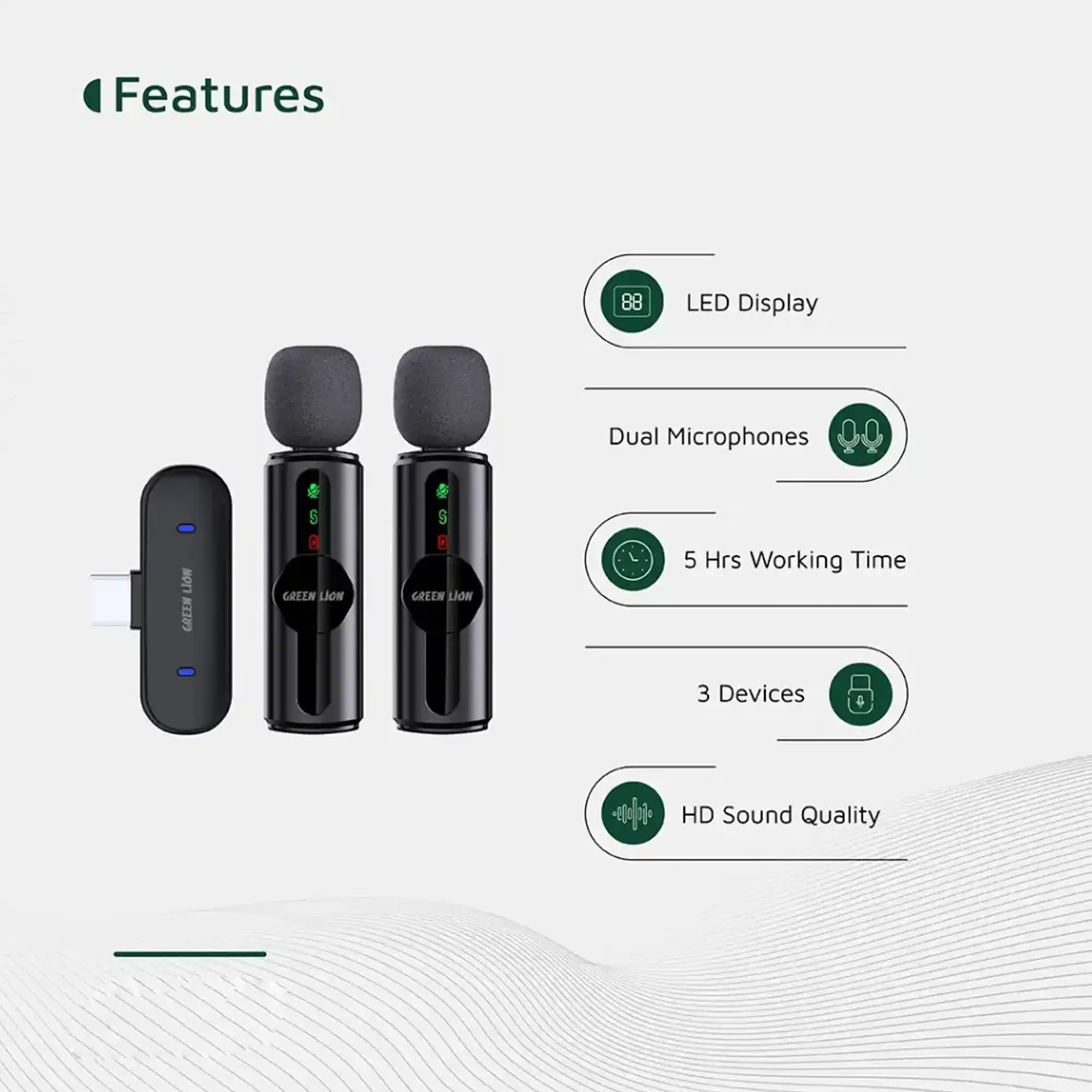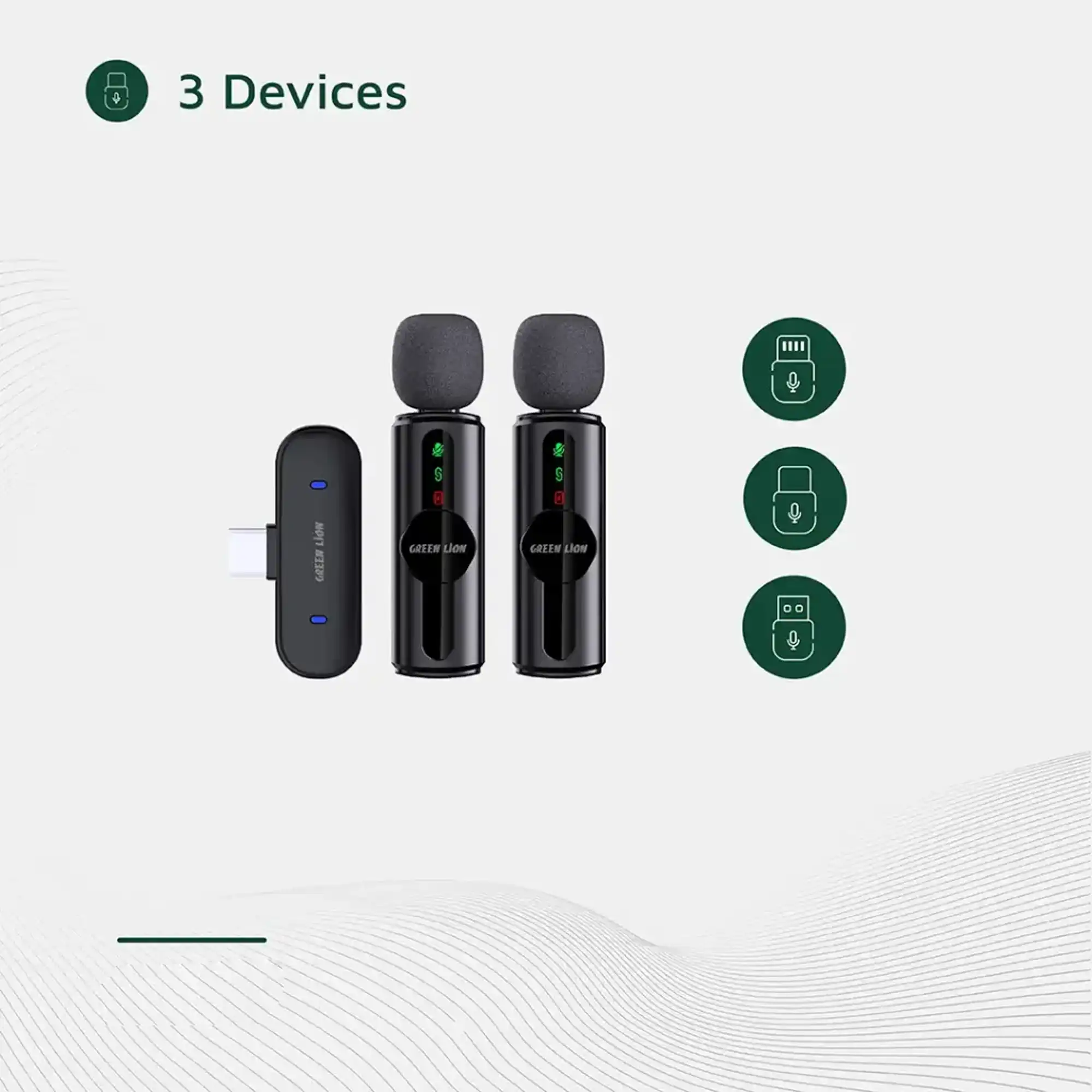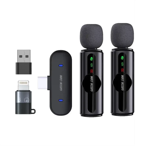 میکروفون یقه ای بی سیم دو کاربره گرین لاین مدل GM 76X رابط Type-C و Lightning و USB-A