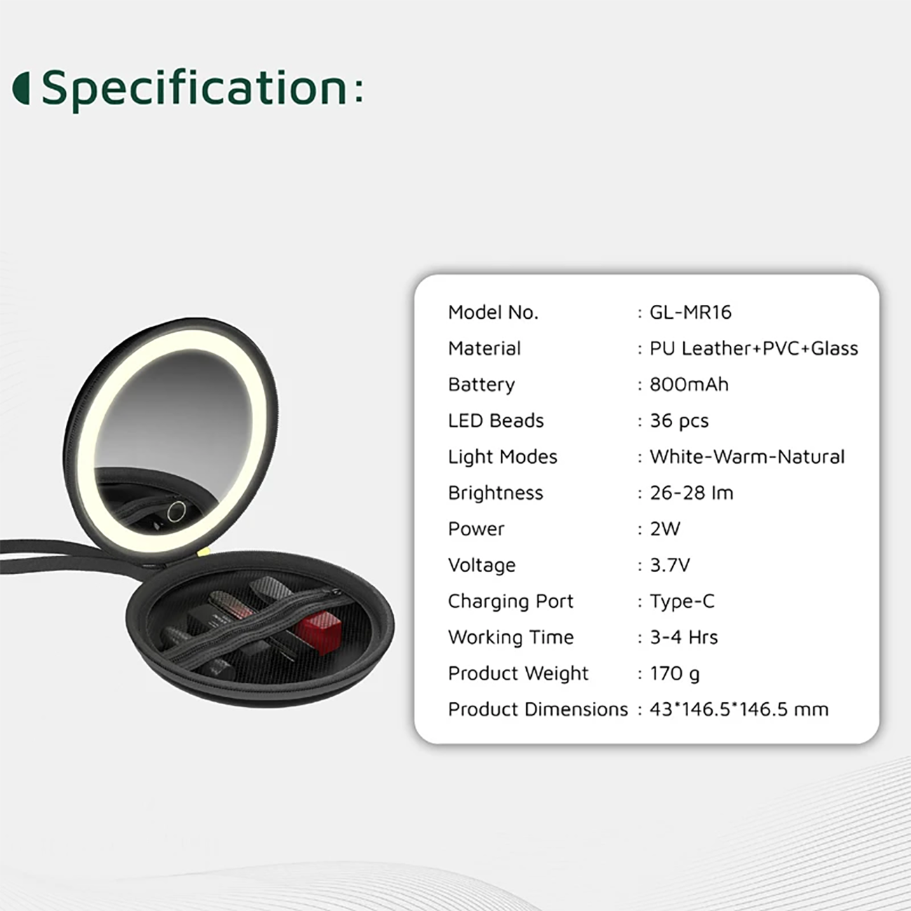 | حالات نور | سه حالت سفید، گرم و طبیعی |