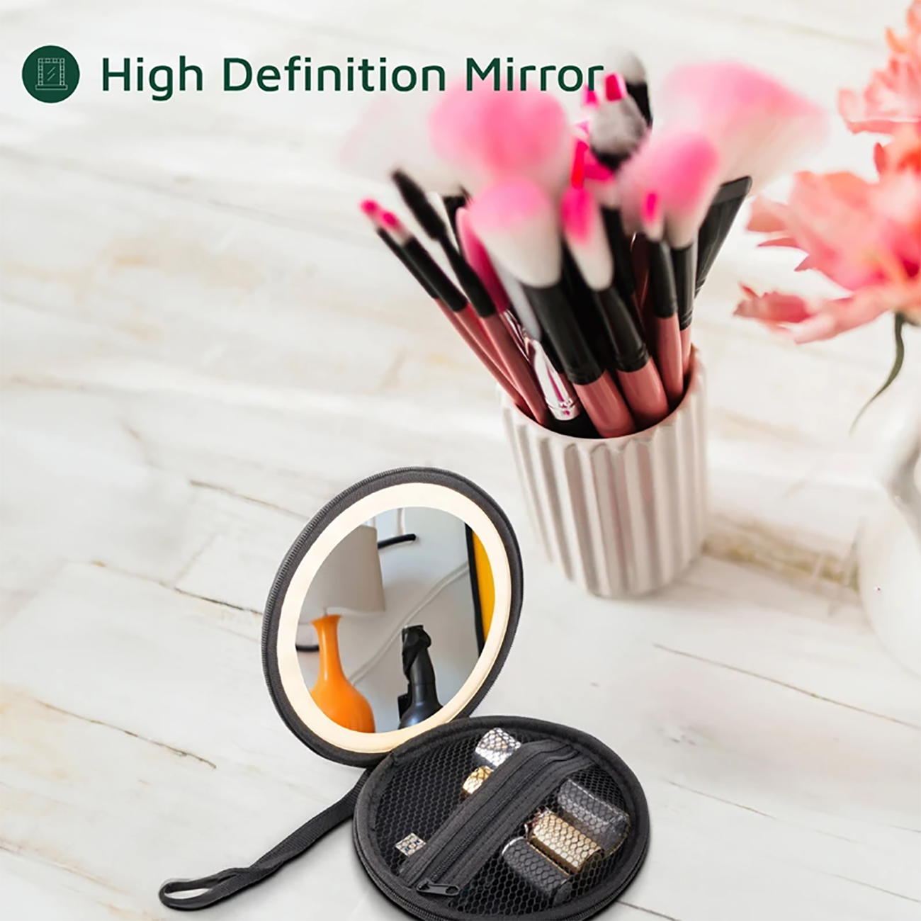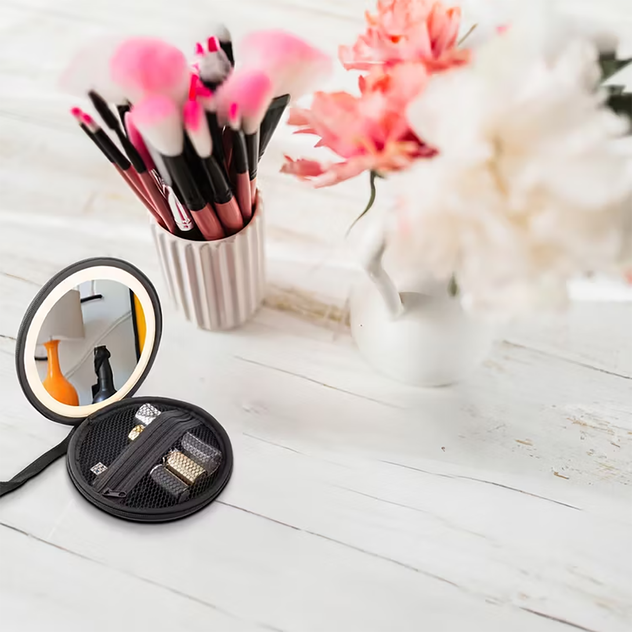 - مینی کیف آرایشی با آینه و لایت
