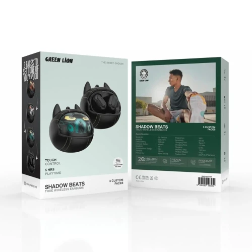 Green Lion Shadow Beats True Wireless Earbuds GNSHBEATBK