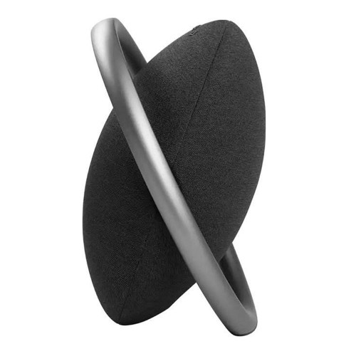 اسپیکر Harman Kardon Onyx Studio 7 طراحی گردی داره و دسته فلزی که مثل مدار دورش قرار گرفته، اون رو جذابتر کرده. وزن این محصول 3295 گرمه و ابعاد اون هم 159.5×302.5×268 میلیمتر در نظر گرفته شده تا بشه خیلی راحت جابهجاش کرد. جنس بدنه اسپیکر، ترکیبی از پارچه و فلزه که این موضوع باعث شده تا طول عمر و دوامش بالاتر بره. همچنین یه کابل آداپتور 1.2 و یه کابل پاور 1 متری هم براش طراحی شده که عملا نیاز به خرید وسایل جانبی اضافه رو از بین برده. روی بدنه این مدل یه سری کلید هم وجود داره که کار باهاش رو سادهتر کرده.