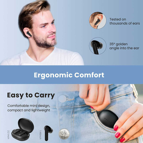 هدفون بی سیم هایلو مدل GT7 NEO از نوع In-Ear یا داخل گوشه و به خوبی صداهای خارجی رو حذف میکنه. وزن باکس این محصول فقط 30 گرمه و با ابعاد 46×61 میلیمتر تولید شده؛ به همین خاطر به راحتی میتونین اون رو توی گوشتون قرار بدین و هر جایی ببرین. روی گوشیهای این مدل کلیدهای لمسی هم قرار گرفته که انجام همه تنظیمات رو امکانپذیر میکنن؛ یه نشونگر LED هم روی اونها دیده میشه که نشون میده به شارژ نیاز دارن و باید انرژی باتریشون رو تامین کنین.