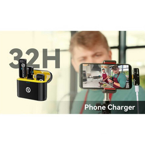 مشخصات فنی این میکروفون خیلی جذابه. ارتباطش بیسیمه و تا 200 متر برد داره که برای ضبط توی فضای باز یا استودیو کافیه. رابطش Lightningه و با دستگاههای اپل که این پورت رو دارن، مثل آیفون و آیپد، سازگاره. SPL تا 110 دسیبل رو تحمل میکنه و گستره دینامیکی 86 دسیبل داره که کیفیت صدای قابل قبولی میده. منبع تغذیهاش باکس شارژه؛ باتری فرستنده 140 میلیآمپر ساعته و توی 1.5 ساعت شارژ میشه و 8 ساعت شارژدهی داره. باکس شارژ 1400 میلیآمپر ساعته و با اون تا 24 ساعت کار میکنه. نشانگر LED و نشانگر میزان شارژ هم داره که وضعیتش رو نشون میده، ولی نور پسزمینه نداره که طراحیش رو سادهتر کرده.