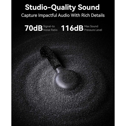 این میکروفون از الگوی قطبی Omni-Directional استفاده میکنه که باعث میشه صداها از تمام جهات به خوبی ضبط بشن. رابط اتصال این میکروفون جک ۳.۵ میلیمتری، Type-C، و Lightningه و محدوده عملکردش تا ۳۰۰ متره. فرکانس پاسخگوییش بین ۲۰ تا ۲۰۰۰۰ هرتزه و حساسیتش هم ۲ ± ۳۷- دسیبله. نسبت سیگنال به نویز (SNR) این میکروفون ۷۰ دسیبله و SPL هم ۱۱۶ دسیبله که باعث میشه بتونه صداهای بلند رو هم بدون مشکل ضبط کنه.