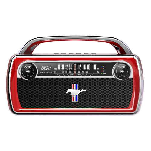 اسپیکر بی سیم آیون مدل FORD MUSTANG STEREO طراحی شبیه به رادیوهای قدیمی داره و توی اون یه بدنه مستطیلی با دسته فلزی قرار گرفته. ابعاد این مدل 92×198×336 میلیمتره و از نوع محصولات قابل حمل یا همون پرتابله. روی اسپیکر دو اهرم چرخشی قرار گرفتن که یکی از اونها برای تنظیم فرکانس رادیو و اون یکی برای تنظیم میزان صدا در نظر گرفته شده.