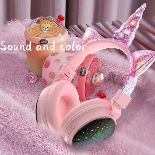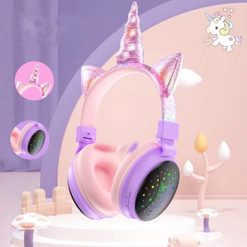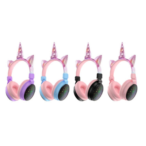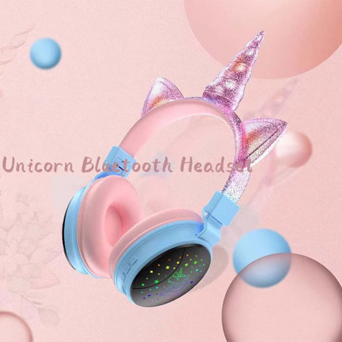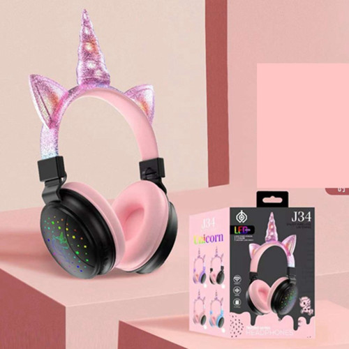 J34 Unicorn Bluetooth cute Headset Luminous on Ear Headphone for kids