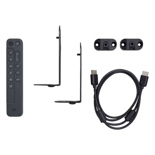 | اقلام همراه اسپیکر | ریموت کنترل | دفترچه راهنما | 2عدد باتری نیم قلمی | کابل برق | 1عدد پایه دیواری | کابل HDMI |