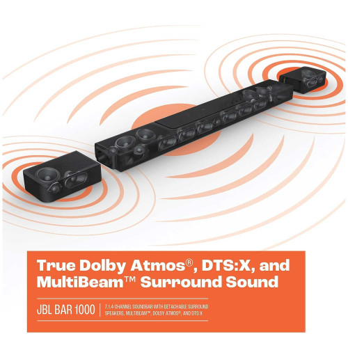 ساندبار جی بی ال مدل BAR 1000 یه اسپیکر خونگی با مشخصات منحصربهفرده که قطعات مختلفی داره. توی این محصول یه سابووفرو، یه قسمت جداشونده و یه ساندبار قرار گرفته که هرکدوم سایز و وزن مخصوص به خودشون رو دارن: