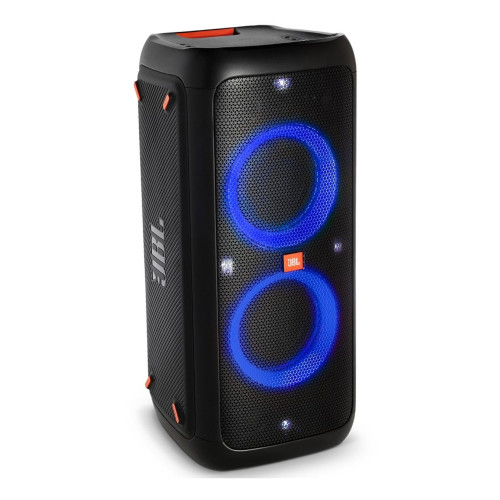 JBL Partybox ۳۰۰ دارای LEDهایی است که قابلیت نورپردازی با جلوههای رنگی متنوع را برای شما به ارمغان میآورد. این محصول دارای سه عدد توئیتر و دو عدد سابووفر قدرتمند است. در هنگام پخش موسیقی از این اسپیکر، توییترهای ۲.۲۵ اینچی این دستگاه صداهای ریز و سابووفرهای ۶.۵ اینچی قدرتمند، بیس باکیفیت، قوی و نرمی را برای شما به گونهای تولید میکند که پخش موسیقی برایتان لذت بخشتر از قبل خواهد بود.