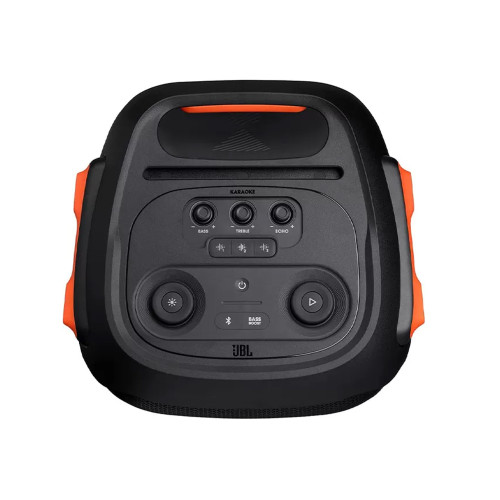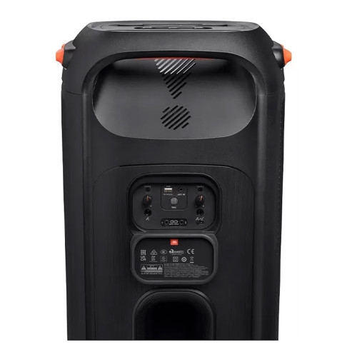 | سایر مشخصات اسپیکر | قابلیت KARAOKE | دارای چرخهای انتقالدهنده برای جابجایی هرچه راحت تر دستگاه | قابلیت Bass Boost برای گوش دادن به صدای فراگیر | پورت ورودی ساز - جک 6.35 میلی متری (مشترک با پورت ورودی دوم میکروفون) | قابلیت تنظیم گین میکروفون و گیتار | پورت USB هم برای اتصال فلش می باشد هم خروجی شارژ با ولتاژ جریان 5V/2.1A | امکان مدیریت و تغییر حالت رقص نور در پنج سبک نور پردازی | قابلیت اتصال دو اسپیکر به یکدیگر به صورت باسیم و بی سیم (تکنولوژی TWS) | نرم افزار اختصاصی JBL PartyBox برای کنترل و سفارشی سازی دستگاه | قابلیت تنظیم BASS , TREBLE و ECHO |