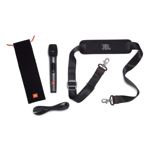 اقلام همراه اسپیکر | دفترچه راهنما | بند رو دوشی | کابل برق دو چاک | 1عدد میکروفون بی سیم | کیف میکروفون |