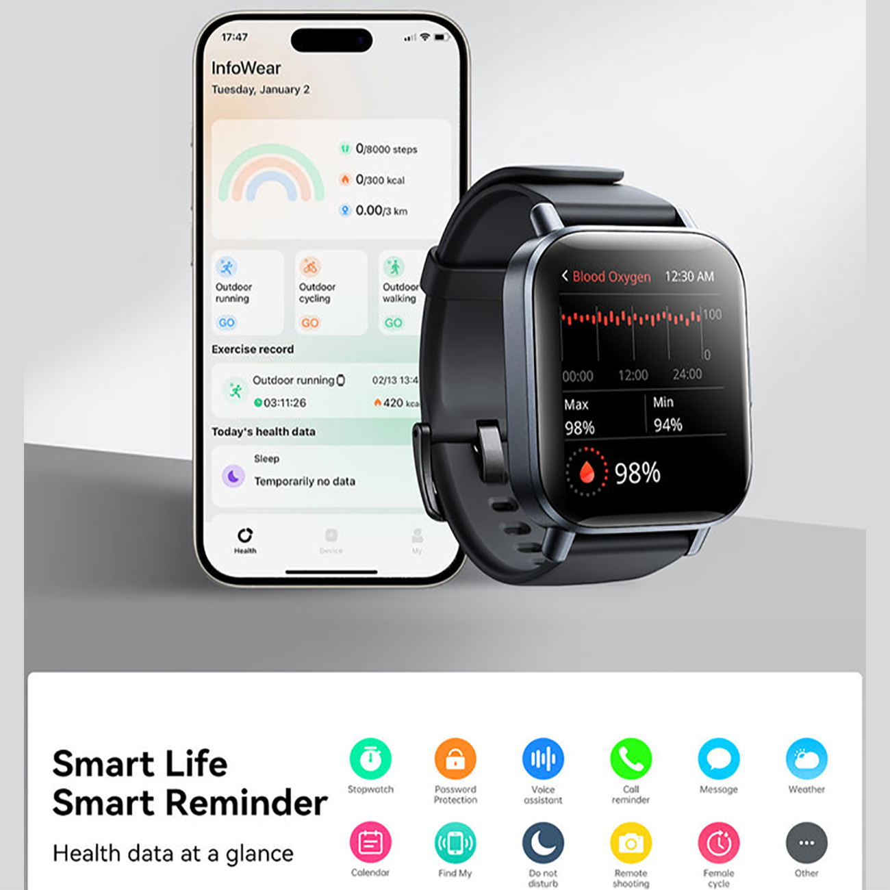 | حسگرها | پایش 24 ساعته ضربان قلب، سطح اکسیژن خون، سطح استرس |