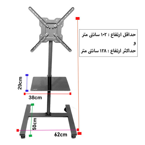 - فاصله از محل نصب : حداکثر ارتفاع نصب از زمین 120cm تا مرکز تلویزیون