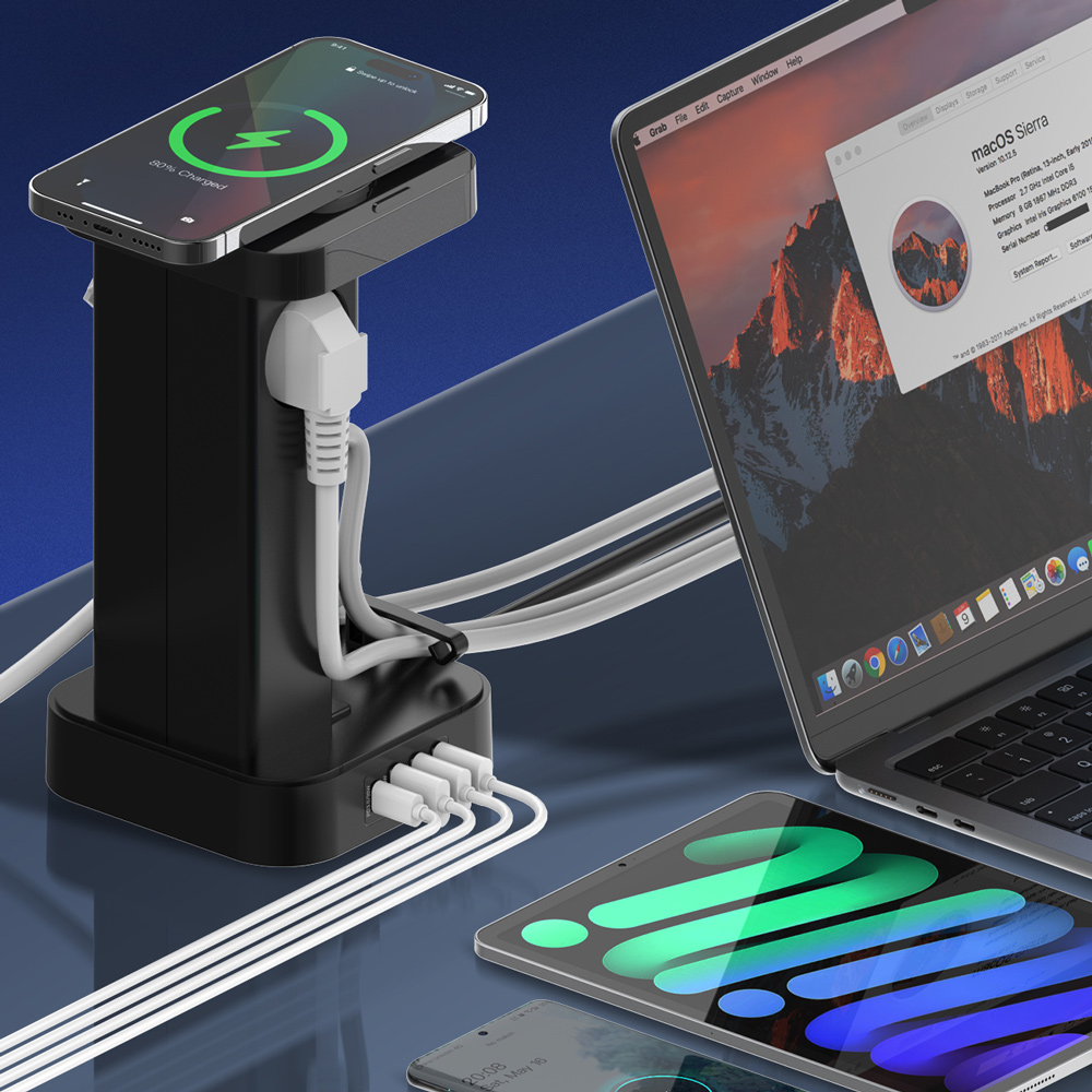| سایر ویژگی ها | محافظ شوک الکتریکی، محافظ نوسان برق، شارژ سریع PD . QC 3.0, QC 2.0, PPS، نمایشگر LED، دکمه لمسی، شارژ وایرلس 5W, 7.5W, 10W, 15W Max، ورودی: 100/240V~50/60Hz 0.7AMax، پشتیبانی از شارژ وایرلس Qi |