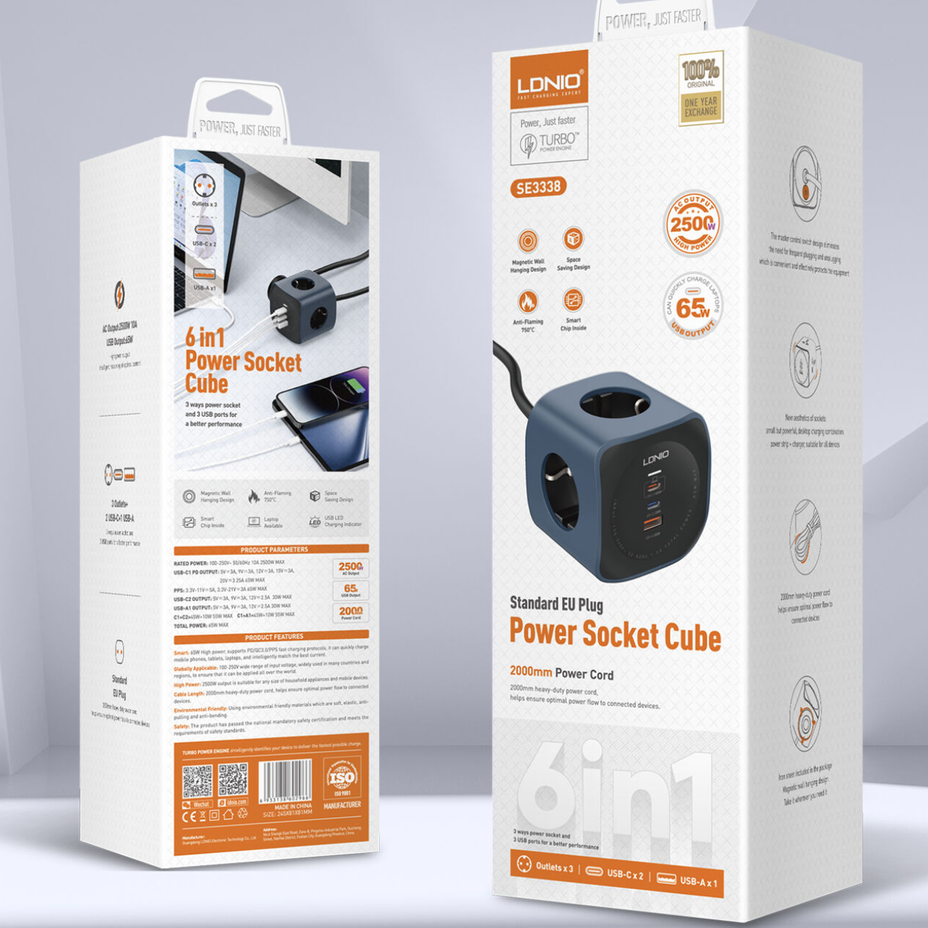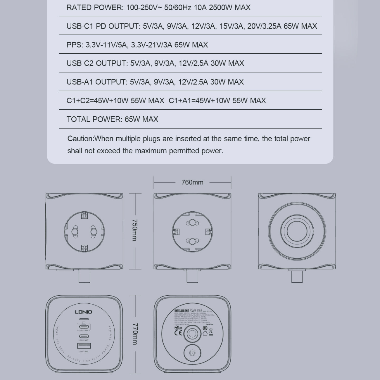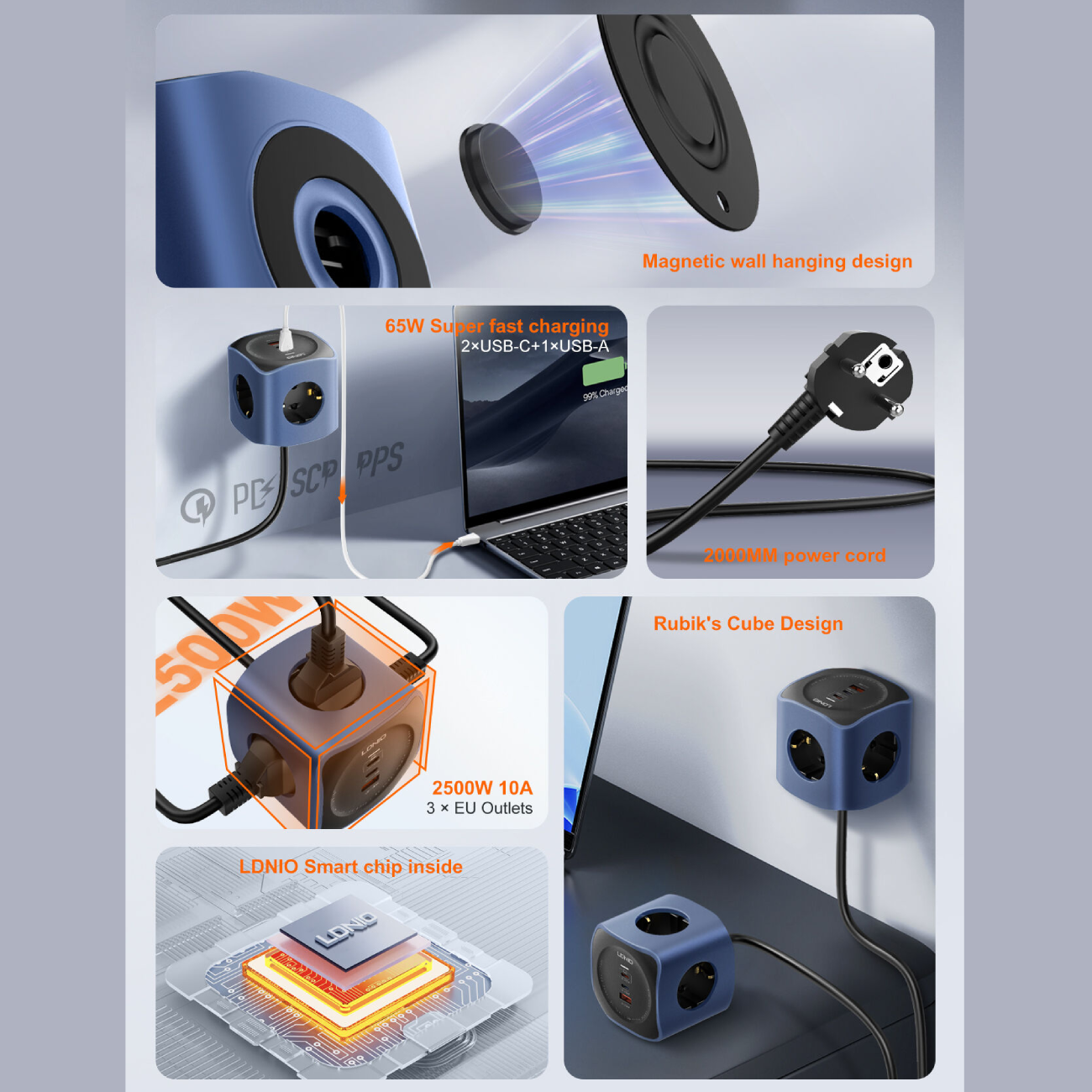 سایر ویژگی ها | - شارژ سریع PD 65W، - پشتیبانی از انواع پروتکلهای شارژ سریع، - قابلیت شارژ سریع لپ تاپ، - شارژ ایمن با حفاظت چندگانه، - طراحی مکعبی جهت صرفهجویی در فضای کار، - پد سیلیکونی ضدلغزش با آهنربای داخلی برای نصب روی سطوح فلزی، - چراغ نشانگر LED سفید کمنور (نمایش وضعیت اتصال) |