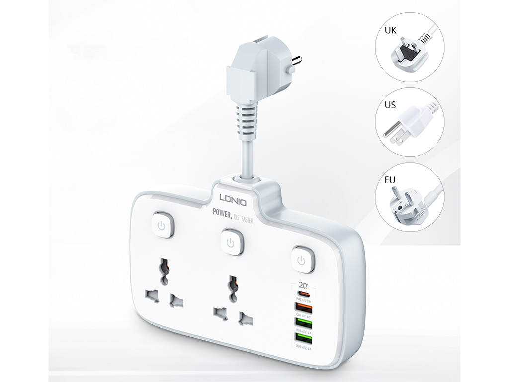 - دارای خروجیهای Universal سازگار با دوشاخههای US, UK و EU