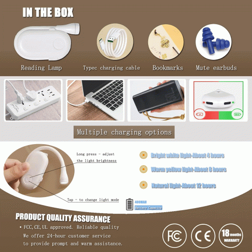 | اقلام همراه | چراغ مطالعه، کابل شارژ Type-C، دفترچه راهنما، نشانک کتاب، ایرباد |