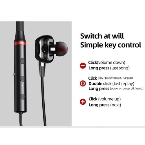 | توضیحات کنترل کننده | با نگه داشتن کلید های مثبت و منفی عوض شدن موسیقی و با فشار دادن ضربه ای میزان صدا اعمال میشود | کلید تماس: با 1ضربه وصل تماس و PALY/PUSE ، با 2 ضربه برقراری آخرین تماس و با نگه داشتن، رد تماس اعمال میشود | کلید پاور/تماس در حالت خاموش: با نگه داشتن 3 ثانیه روشن شدن و نگه داشتن 7 ثانیه حالت Paring اعمال میشود |