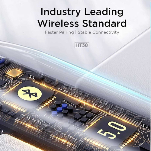 نوع ارتباط هندزفری HT38 بهصورت بیسیمه که با استفاده از نسخه بلوتوث ورژن 5.0 انجام میشه و سرعت اتصال خیلی بالا و کاملا پایداری داره. محدوده عملکرد این محصول 10 متره و بعد از وصل شدنش، صدا رو با ویژگیهای زیر به گوشتون میرسونه:
