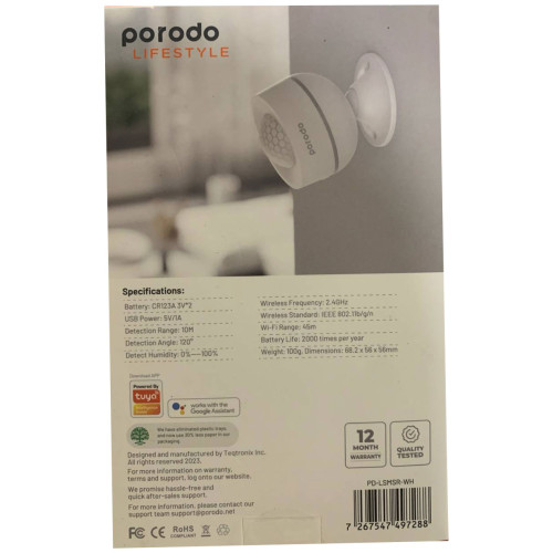 سنسور حرکت هوشمند با سنسورهای رطوبت و دما پورودو مدل PDLSMSRWH