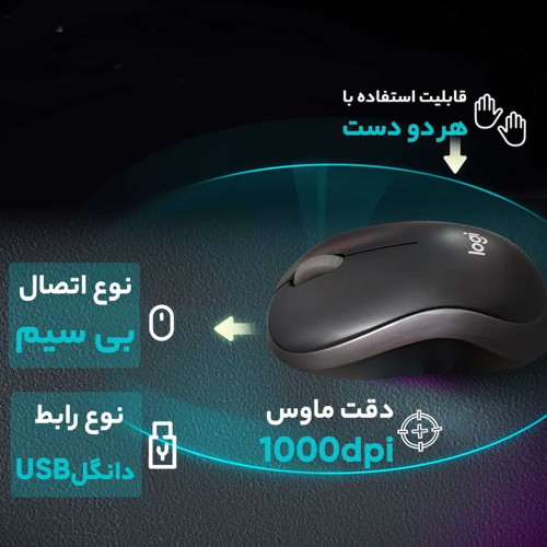 ماوس M185 بدون سیم کار میکنه و با استفاده از دانگل بی سیم USB 2.4 GHz به کامپیوتر، لپتاپ و... وصل میشه. محدوده عملکرد این محصول بدون مانع 10 متره و توی این فاصله هم خیلی خوب و باکیفیت ارتباطش رو حفظ میکنه. امکان تغییر DPI هم توی اون وجود داره که بین 800 تا 1600 در نظر گرفته شده.