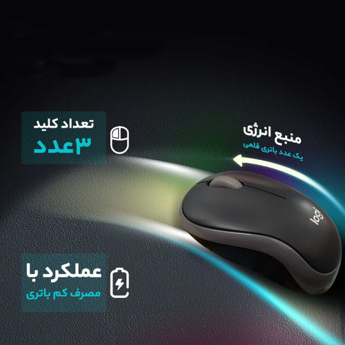 حسگر این ماوس از نوع اپتیکاله؛ این حسگر از نور LED برای ردیابی حرکت ماوس استفاده میکنه. M185 با استفاده از باتری کاری میکنه؛ بنابراین باید یه باتری قلمی رو توی جایگاه مربوطه توی قسمت پشت محصول بذارین و تا زمانی که شارژ داره، ازش استفاده کنین. معمولا یه باتری تا 12 ماه جواب میده.