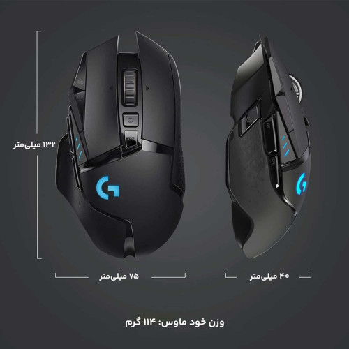 مشخصات فیزیکی Logitech G502 LIGHTSPEED Gaming Mouse