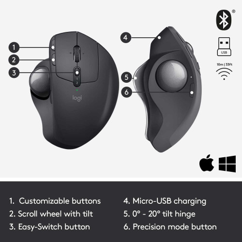 ویژگیهای ماوس بیسیم لاجیتک مدل MX ERGO