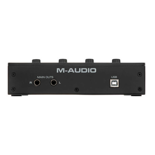 کارت صدای M-Track Duo از طریق رابط USB 2.0 به سیستم متصل میشه و به همین ترتیب از طریق پورت USB تغذیه میشه، بنابراین نیازی به منبع تغذیه خارجی نیست و به راحتی به لپتاپ یا کامپیوتر متصل میشه. این کارت صدا دارای دو ورودی آنالوگ ترکیبی از نوع XLR و جک 6.3 میلیمتری هست که امکان اتصال انواع میکروفون و سازهای الکتریکی رو فراهم میکنه. در بخش خروجی، دو جک RCA برای اتصال به اسپیکر یا تجهیزات صوتی دیگه وجود داره. کیفیت ضبط این دستگاه تا 16 بیت و 48 کیلوهرتز پشتیبانی میکنه که برای ضبطهای ساده و تولید محتوا با کیفیت قابل قبوله. نشانگرهای LED برای نمایش وضعیت سیگنال و کنترل گین مستقل برای هر ورودی از دیگر ویژگیهای این کارت صداهست. همچنین امکان مانیتورینگ بدون تأخیر با استفاده از خروجی هدفون برای کاربران فراهم شده.