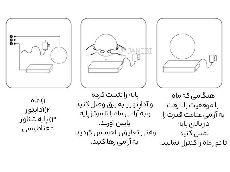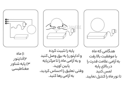 | محتویات جعبه | پایه الکترومغناطسی/سیاره نورانی ال ای دی با آهنربای یکپارچه/ آداپتور / کتابچه راهنما |