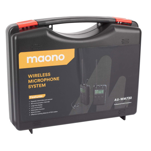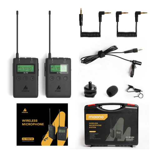 میکروفون ماونو AU-WM730 هر چیزی که از یک میکروفون یقهای بیسیم میخواهید را در یک پکیج جمع و جور قرار داده است. این محصول شامل یک فرستنده و یک گیرنده قابل حمل است و با توجه به اینکه اتصال این میکروفون از طریق جک 3.5 میلی متریست، قابلیت اتصال و اجرا (Plug and play) با طیف وسیعی از تجهیزات از جمله تلفنهای هوشمند ( IOS و اندرویدی)، رایانه، دوربینهای فیلمبرداری، دوربینهای DSLR و غیره را دارد.
