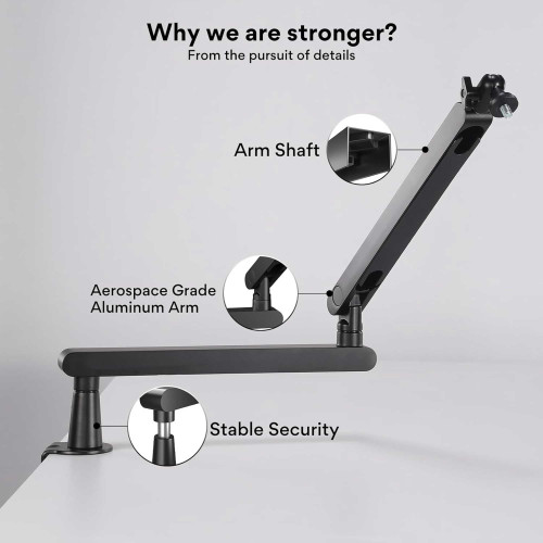 پایه بازویی BA92 از جنس آلومینیوم با دوام ساخته شده که همین موضوع نشوندهندهی استحکام بالای اون در استفادههای طولانی مدته. وزن این پایه حدود ۲ کیلوگرمه، پس کاملاً پایدار روی میز قرار میگیره و لرزش نداره.