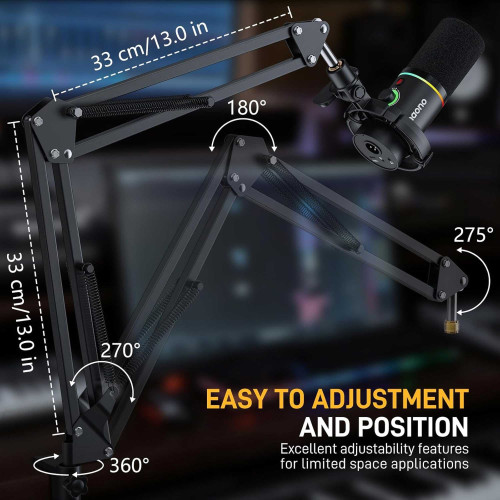 برای کارهای سبک تا نیمهحرفهای مثل پادکست، استریم، تماس تصویری و تولید محتوای صوتی خانگی بسیار مناسبه. اما برای میکروفونهای خیلی سنگین بهتره از مدلهای با تحمل وزن بیشتر استفاده بشه.