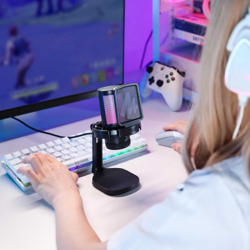یه ویژگی دیگه که باعث جذابیت بیشتر این میکروفون شده، وجود نور پسزمینه rgb اونه که حین استفاده زیباترش میکنه. البته دکمههای لمسی که برای تنظیمات و روشن و خاموش کردن این محصول طراحی شدن، ویژگیهای مثبتش رو تکمیل کردن.