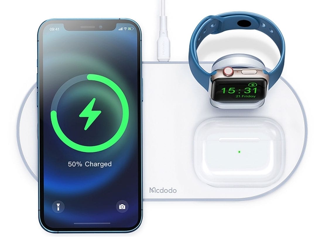 - سهکاره قابلیت شارژ همزمان اپل واچ، هندزفری بلوتوثی و گوشی