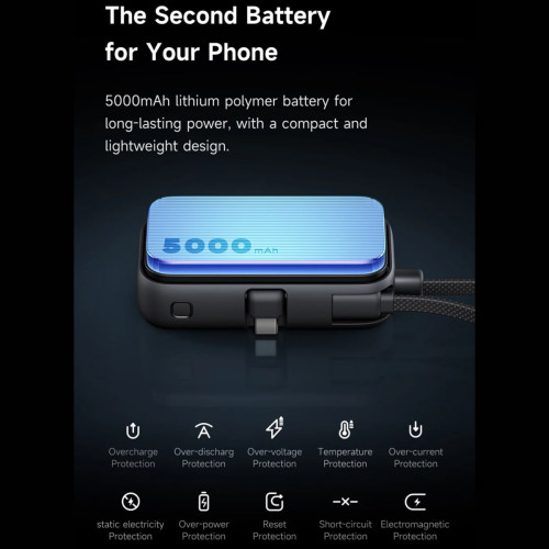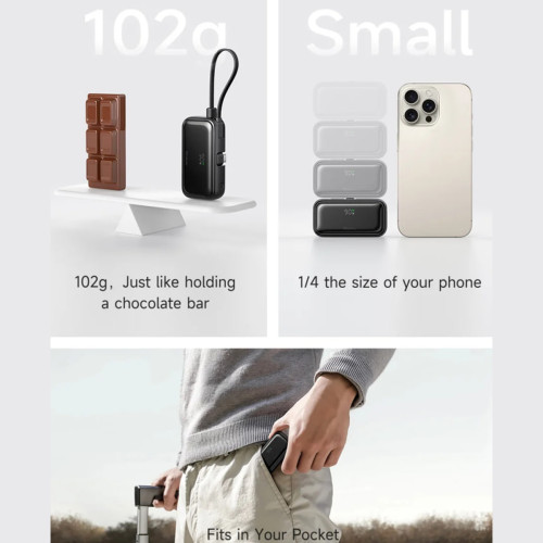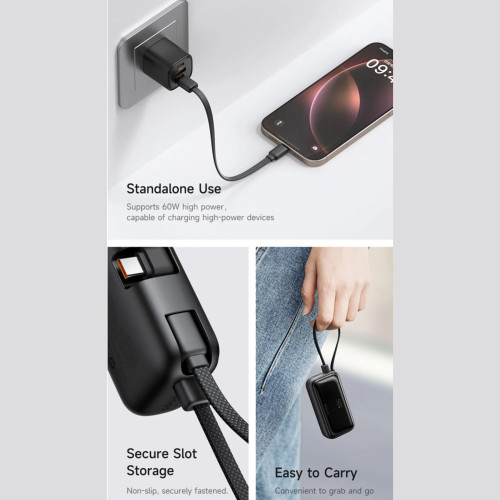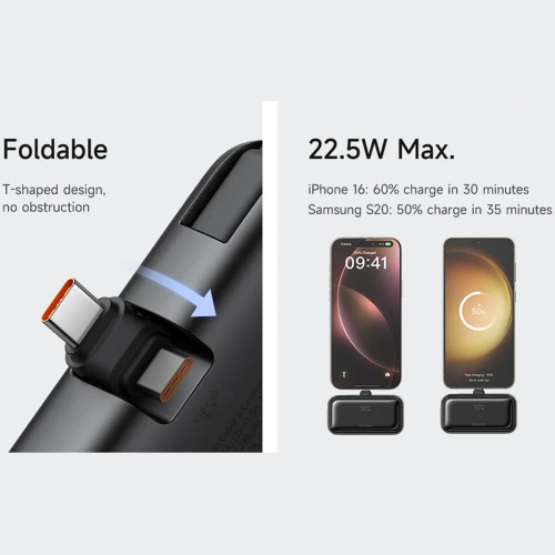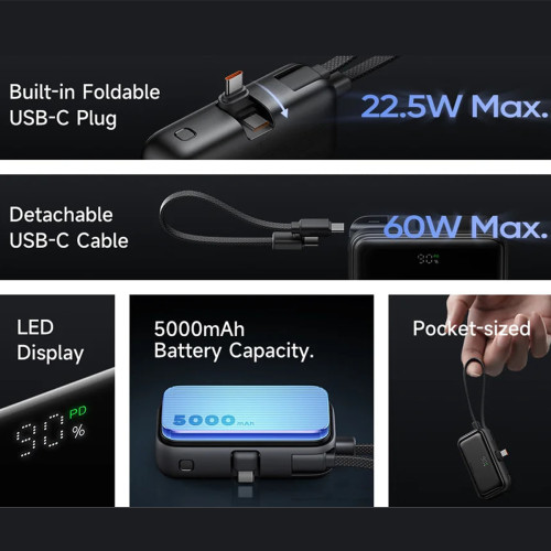 امکانات و قابلیتها | شارژ سریع PD، کابل داخلی USB-C قابل جدا شدن، کانکتور USB-C تاشو، قابلیت استفاده همزمان به عنوان استند گوشی |