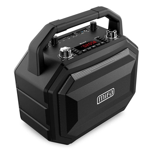 اسپیکر پرتابل بلوتوثی میفا مدل M520 II یه محصول خیلی جذابه. این مدل فقط 5 کیلوگرم وزن داره و ابعادش 196×360×350 میلیمتره. بدنهی اون از ABS یا پلاستیک مقاوم ساخته شده و کلیدهاش هم از نوع مکانیکی هستن. اگه به بدنهی اسپیکر دقت کنین، یه نمایشگر LED رو میبینین که میتونه زمان، تنظیمات و میزان شارژ باتری اون رو بهتون نشون بده.