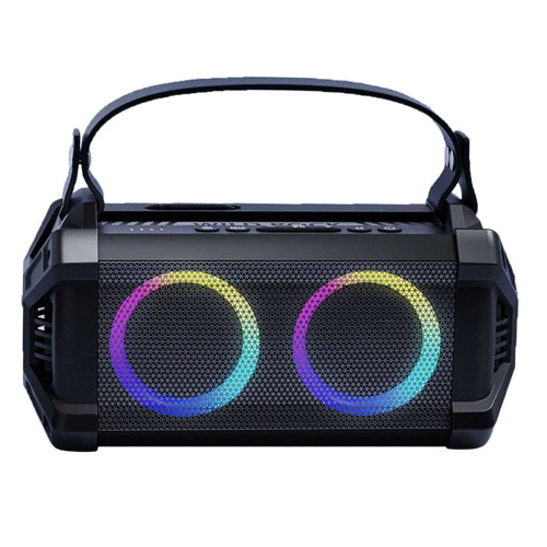 برای حملونقل آسون، روی اسپیکر دستگیرهای در نظر گرفتن که باهاش میتونین راحت این دستگاه رو جابهجا کنین. این اسپیکر نور RGB هم داره که باعث میشه تا موقع پخش آهنگ حسوحال جذابی به محیط بده.