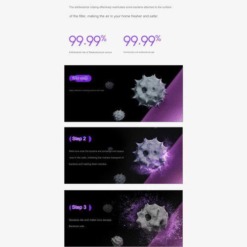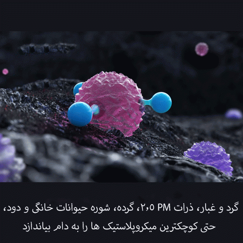 | حذف ذرات | گرد و غبار، ذرات PM 2.5، گرده، شوره حیوانات خانگی و دود، حتی کوچکترین میکروپلاستیک ها |