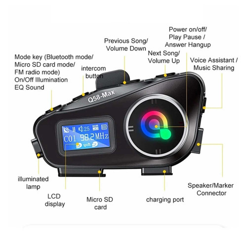 اگه اهل موتورسواری هستین و از بین انواع هدفون، دنبال یه هدست بلوتوث مخصوص کلاه کاسکت میگردین که کارایی بالایی هم داشته باشه، مدل Q58 MAXانتخاب خیلی خوبیه. این محصول، طراحی شده تا هم راحت باشین و هم بتونین با حس و حال بهتری به فایلهای صوتی مورد نظرتون گوش بدین.
