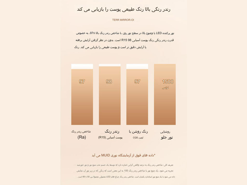 | دمای رنگ | نور سفید سرد 5300k نور طبیعی 4300k نور سفید گرم 3600k |