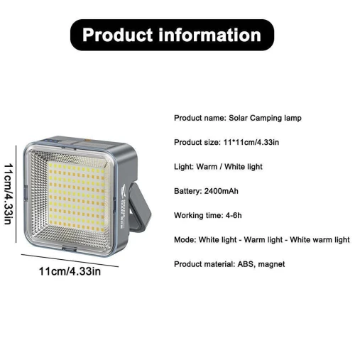ابعاد این چراغ فقط ۱۱۰ در ۱۱۰ میلیمتره و از جنس پلاستیک مقاوم ABS ساخته شده که هم سبک و هم در برابر ضربه و رطوبت مقاومه. ظاهرش ساده و کاربردیه اما طراحی هوشمندانهاش باعث شده برای استفاده در فضای باز کاملاً مناسب باشه. وجود دستهی قابل تنظیم بهتون اجازه میده زاویه نور رو بسته به موقعیت دلخواه تنظیم کنین. همچنین یه قلاب آویز هم روی بدنه قرار گرفته تا بتونین چراغ رو از سقف چادر، شاخه درخت یا هر جایی آویزون کنین. یه ویژگی جذاب دیگه هم داشتن آهنربای قدرتمند روی بدنهست که باعث میشه به راحتی روی سطوح فلزی مثل بدنهی ماشین یا ستون فلزی وصل بشه.