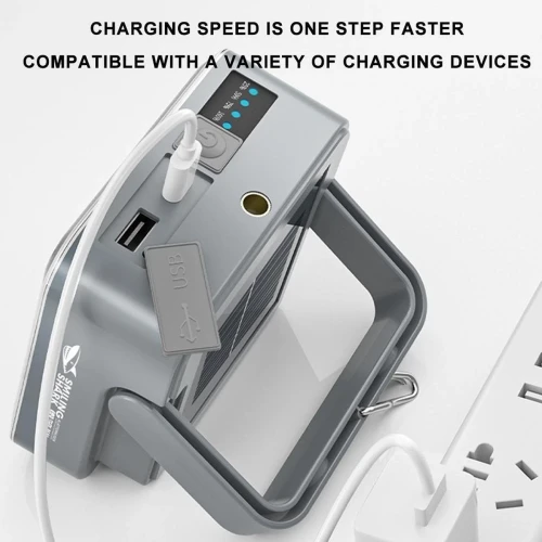 نورافکن و چراغ کمپینگ شارژی خورشیدی ضدآب و پاوربانک اسمایلینگ شارک مدل LY8281 یه محصول همهفنحریفه که هم توی سفر و کمپینگ به کارتون میاد و هم توی خونه یا محل کار. با سه حالت نور، شارژ خورشیدی، قابلیت پاوربانک و طراحی مقاوم در برابر آب و ضربه، عملاً هر چیزی که از یه چراغ همراه بخواین رو در اختیارتون میذاره.
