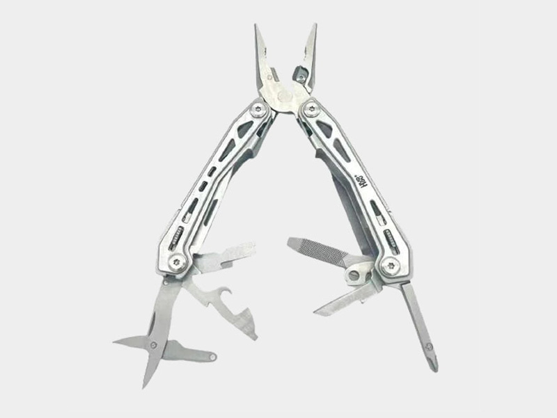ابزار شامل | در بازکن، سیم بر، خط کش، سوهان، چاقو، قیچی، پیچ گوشتی، مینی اره، انبردست |